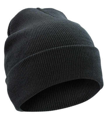 Černá pletená čepice z jemného úpletu, ohrnovací spodní okraj.