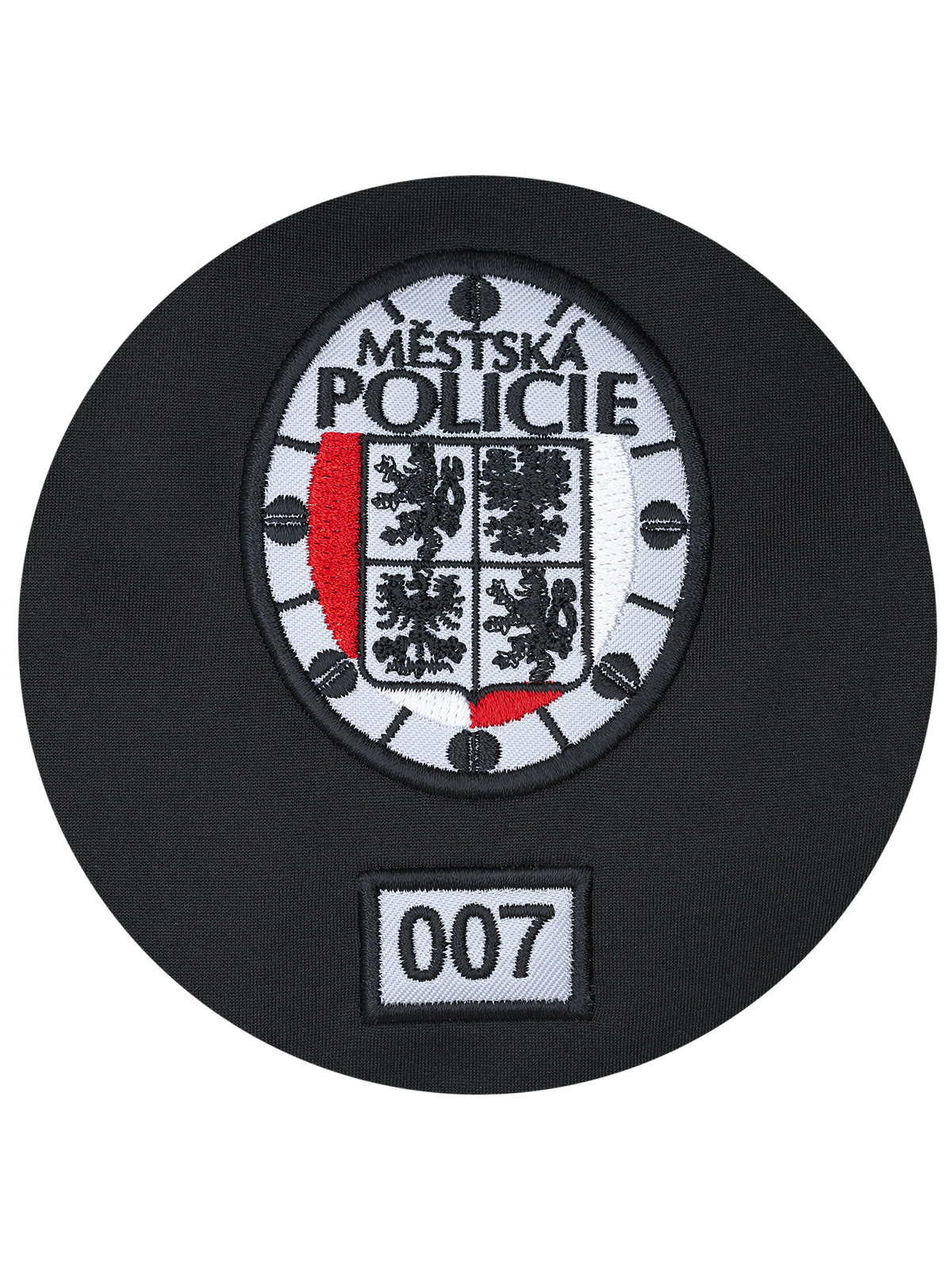 TIŠTĚNÉ PRUŽNÉ NÁPISY - bílý text MĚSTSKÁ POLICIE na předním a zadním díle. Alternativně skladem i bez těchto potisků pro možnost aplikace jiné barvy či způsobu označení MP (žlutý text, nápisy APK apod.).